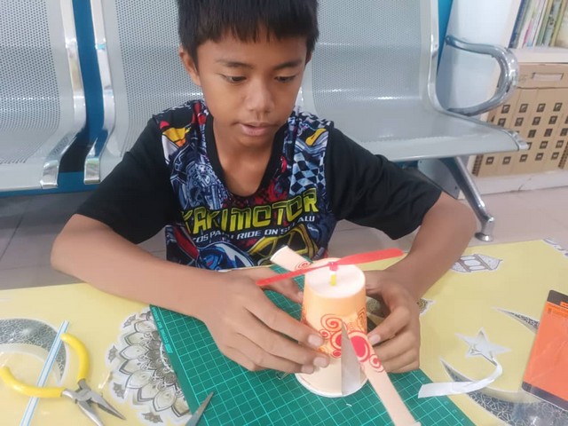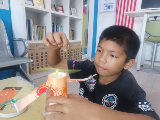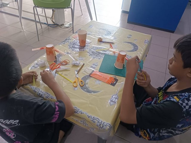 Untuk kelas STEM pada kali ini, para peserta telah diperkenalkan dengan aktiviti STEM – Paper Cup Helicopter. Para peserta terlebih dahulu menonton sebuah video pendek tentang cara-cara untuk membina Paper Cup Helicopter menggunakan bahan yang telah disediakan seperti straw, cawan kertas, benang, propeller, klip kertas, pita pelekat, gam dan getah. Para peserta telah diberikan masa selama 1 jam bagi menyiapkan tugasan yang telah diberikan.