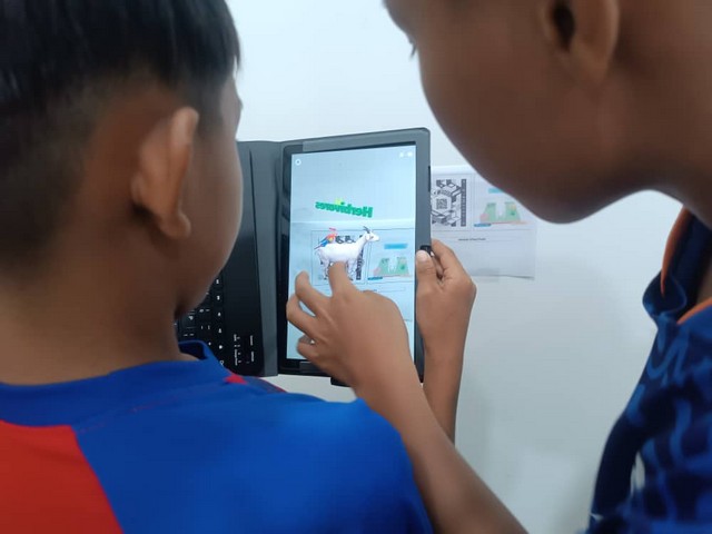 Para peserta telah dibekalkan dengan peranti tablet PEDi untuk kegunaan mereka untuk mengimbas ‘Marker’ yang telah disediakan menggunakan aplikasi Assembler Edu. Para peserta teruja melihat gambar piramid makanan dan struktur tikus terhasil dalam bentuk 3D apabila diimbas menggunakan aplikasi Assembler Edu tersebut. Diharapkan dengan adanya aktiviti seperti ini boleh menjadikan suasana pembelajaran e-Learning di PEDi lebih menarik dan menyeronokkan seterusnya dapat menarik lebih ramai komuniti setempat datang ke PEDi.